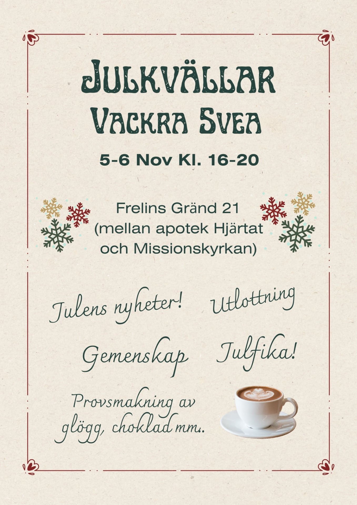 Alla mysiga julmarknader börjar närma sig. Doften av glögg, röken och knastrandet från eldarna, man fryser lite om fingertopparna och kylan biter i kinderna. Vi börjar så sakteliga värma upp inför kommande högtid. Detta med våra uppskattade julkvällar 5-6 november, varmt välkommen!